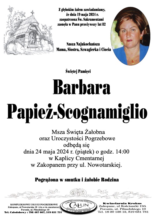 Barbara Papież-Scognamiglio - Nekrologi - podhale24.pl