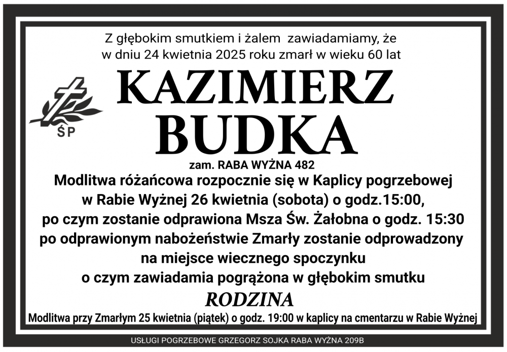 Kazimierz Budka - Nekrologi - podhale24.pl
