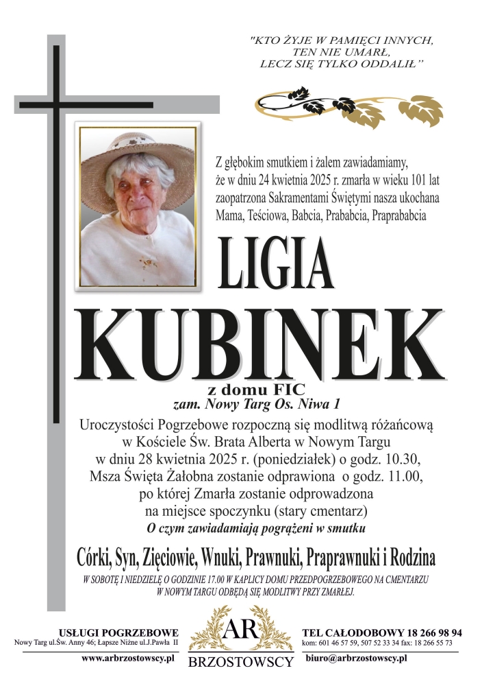 Ligia Kubinek - Nekrologi - podhale24.pl