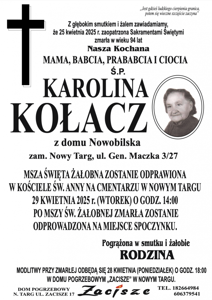 Karolina Kołacz - Nekrologi - podhale24.pl