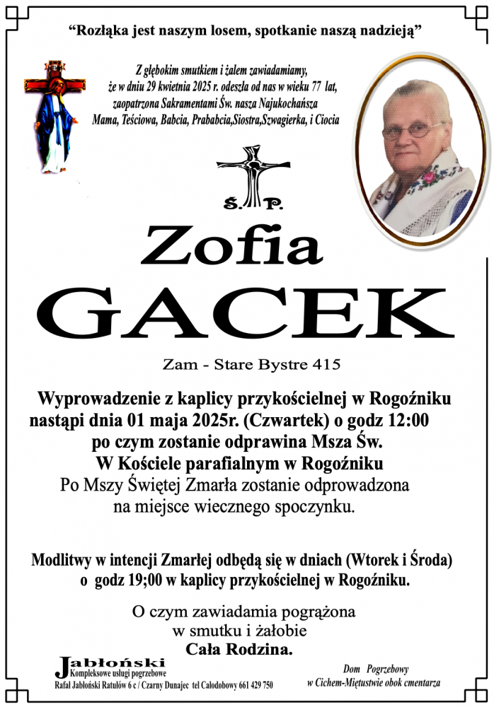 Zofia Gacek - Nekrologi - podhale24.pl
