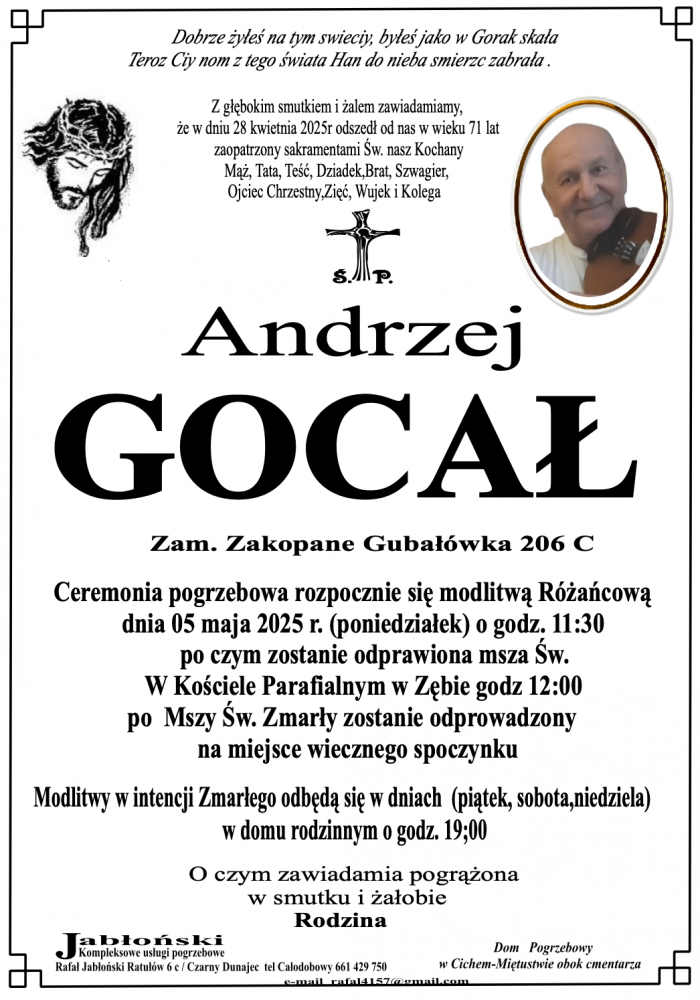 Andrzej Gocał - Nekrologi - podhale24.pl