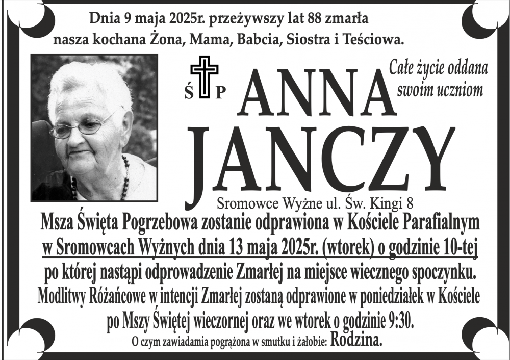 Anna Janczy - Nekrologi - podhale24.pl