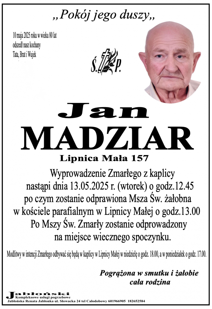 Podhale24.pl zastrzega sobie prawo do nie publikowania wspomnień, w szczególności tych nie związanych z profilem działu nekrologi, zawierających wulgaryzmy, wzywających do zachowań niezgodnych z prawem, obrażających osoby publiczne i prywatne, obrażających inne narodowości, rasy, religie itd, oraz te, bez możliwości telefonicznej lub mailowej weryfikacji ich autora.