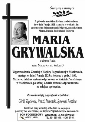 Podhale24.pl zastrzega sobie prawo do nie publikowania wspomnień, w szczególności tych nie związanych z profilem działu nekrologi, zawierających wulgaryzmy, wzywających do zachowań niezgodnych z prawem, obrażających osoby publiczne i prywatne, obrażających inne narodowości, rasy, religie itd, oraz te, bez możliwości telefonicznej lub mailowej weryfikacji ich autora.