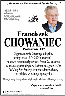 Podhale24.pl zastrzega sobie prawo do nie publikowania wspomnień, w szczególności tych nie związanych z profilem działu nekrologi, zawierających wulgaryzmy, wzywających do zachowań niezgodnych z prawem, obrażających osoby publiczne i prywatne, obrażających inne narodowości, rasy, religie itd, oraz te, bez możliwości telefonicznej lub mailowej weryfikacji ich autora.