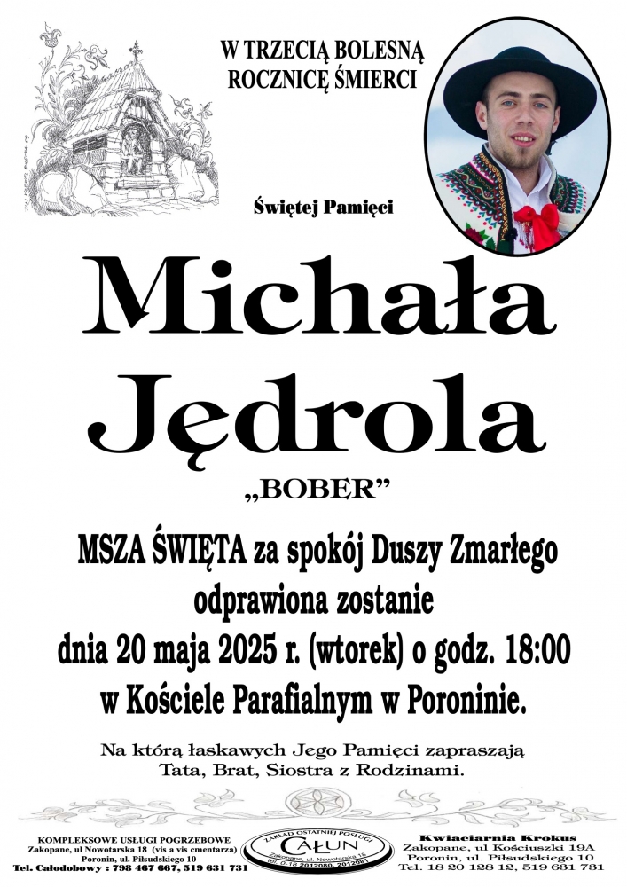 Podhale24.pl zastrzega sobie prawo do nie publikowania wspomnień, w szczególności tych nie związanych z profilem działu nekrologi, zawierających wulgaryzmy, wzywających do zachowań niezgodnych z prawem, obrażających osoby publiczne i prywatne, obrażających inne narodowości, rasy, religie itd, oraz te, bez możliwości telefonicznej lub mailowej weryfikacji ich autora.
