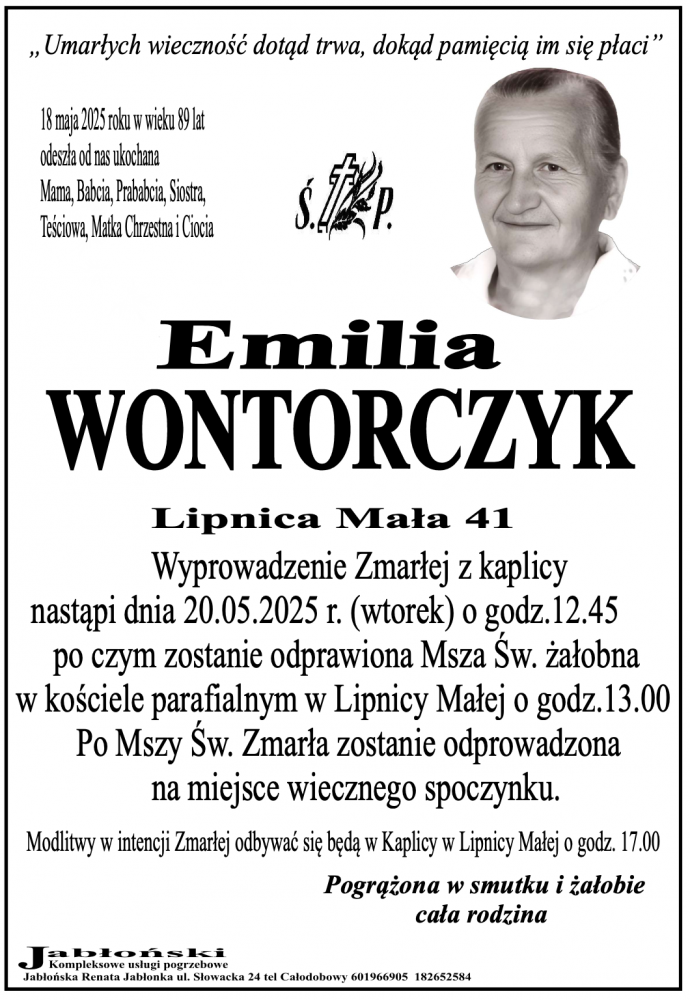 Emilia Wontorczyk - Nekrologi - podhale24.pl
