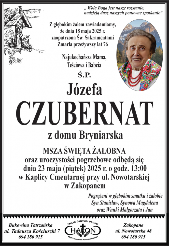 Józefa Czubernat - Nekrologi - podhale24.pl