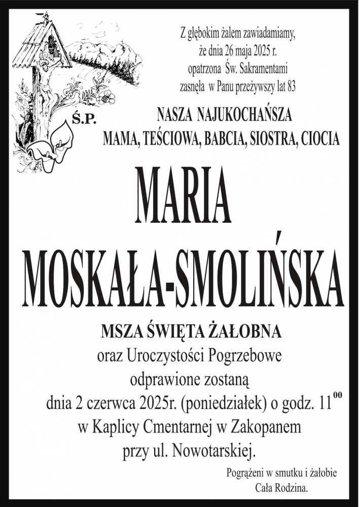 Maria Moskała-Smolińska - Nekrologi - podhale24.pl