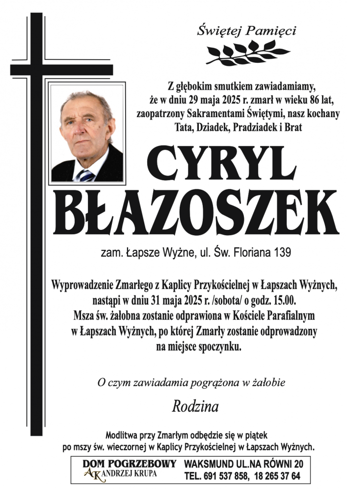 Cyryl Błazoszek - Nekrologi - podhale24.pl