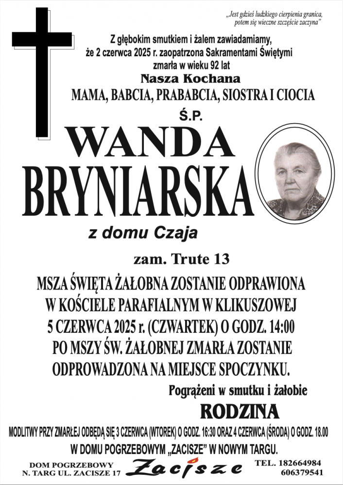 Wanda Bryniarska - Nekrologi - podhale24.pl