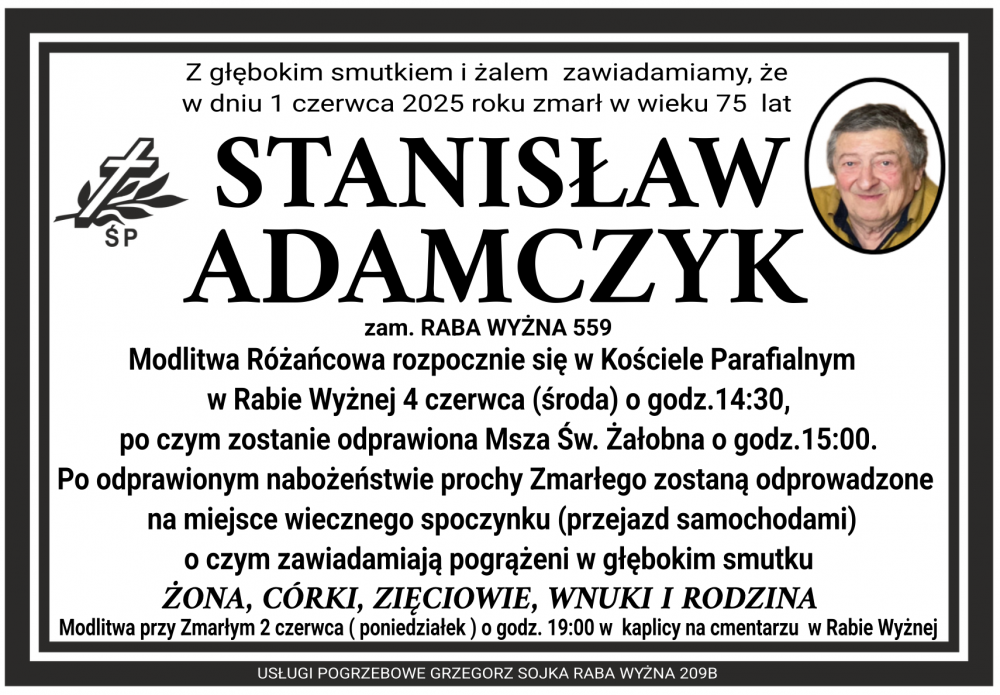 Stanisław Adamczyk - Nekrologi - podhale24.pl