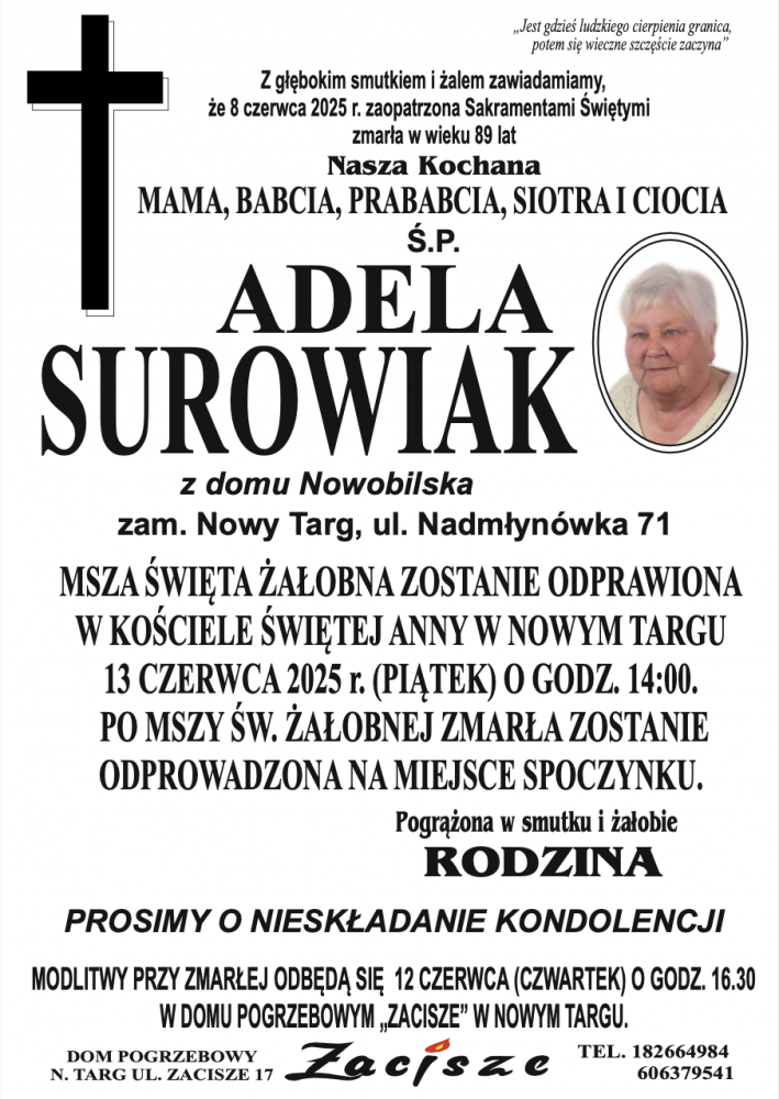 Adela Surowiak - Nekrologi - podhale24.pl
