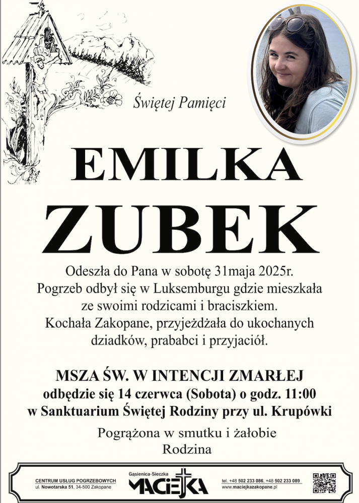 Emilka Zubek - Nekrologi - podhale24.pl