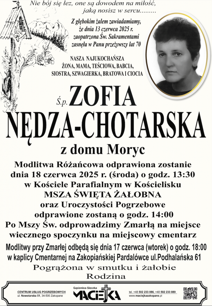 Zofia Nędza-Chotarska - Nekrologi - podhale24.pl