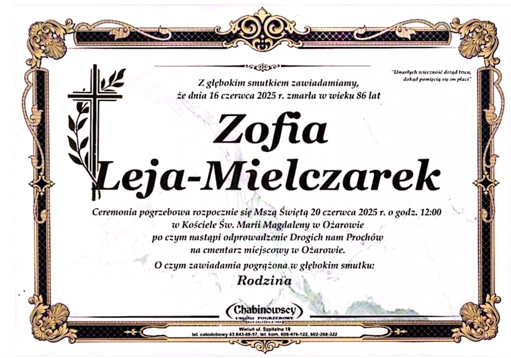 Zofia Leja-Mielczarek - Nekrologi - podhale24.pl