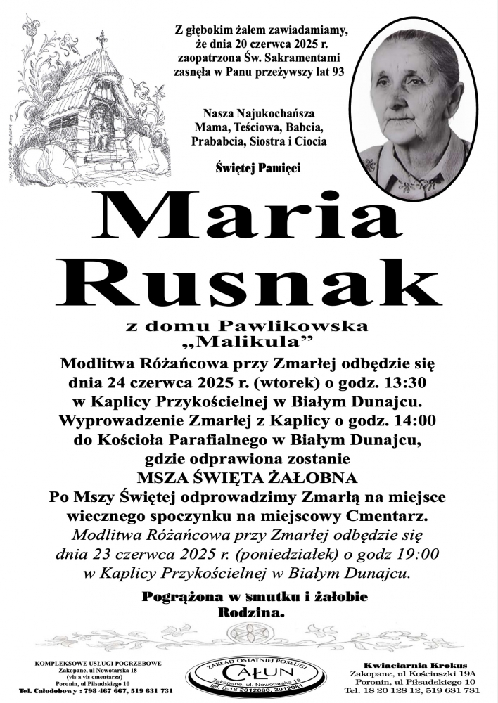 Maria Rusnak - Nekrologi - podhale24.pl