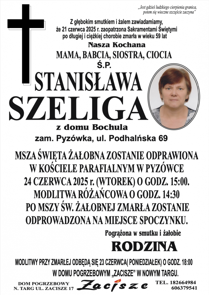 Stanisława Szeliga - Nekrologi - podhale24.pl