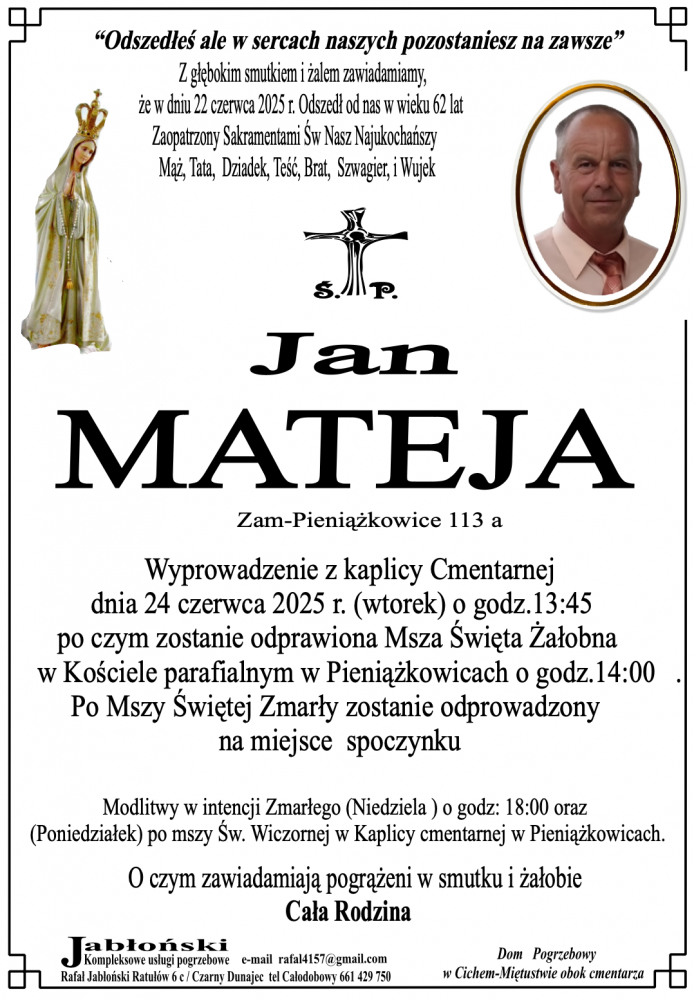 Jan Mateja - Nekrologi - podhale24.pl
