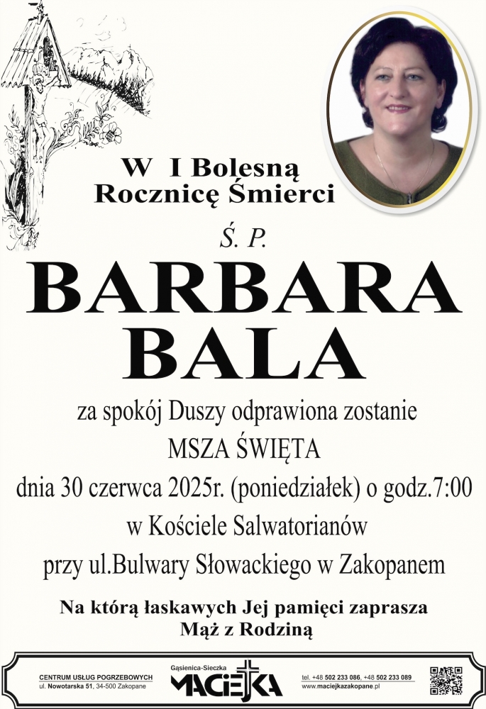 Barbara Bala - Nekrologi - podhale24.pl