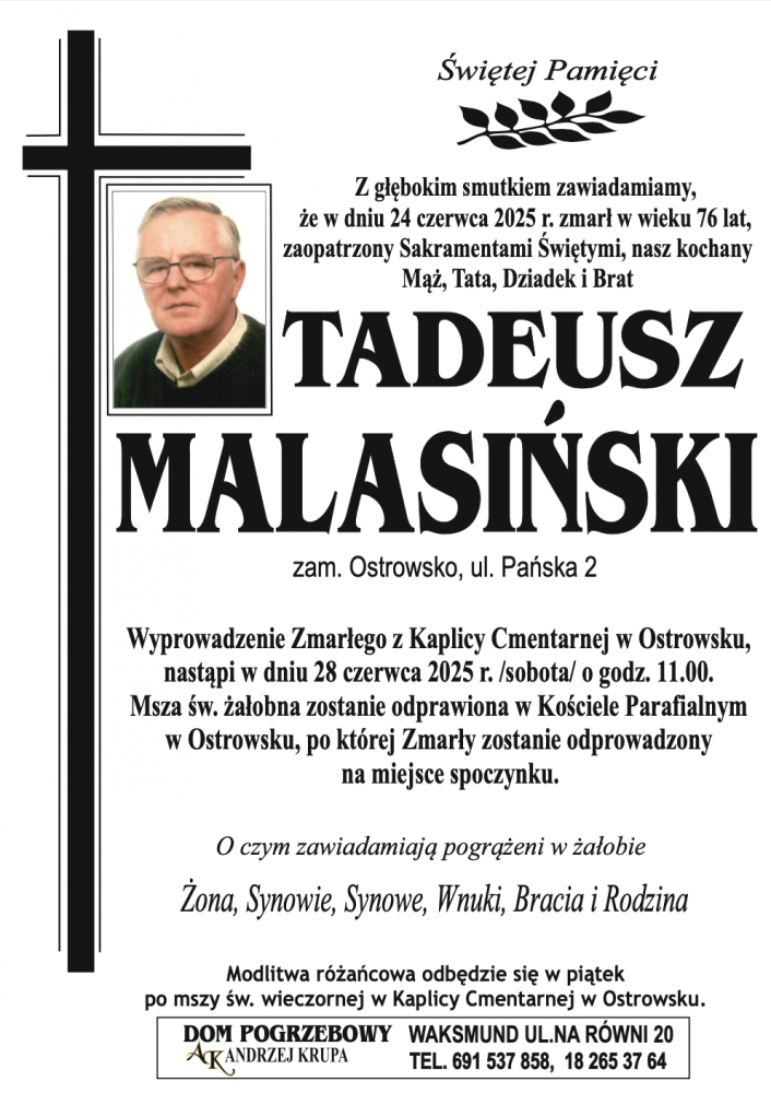Tadeusz Malasiński - Nekrologi - podhale24.pl