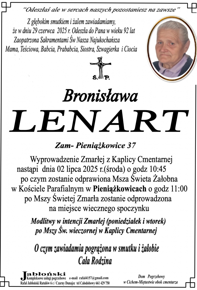 Bronisława Lenart - Nekrologi - podhale24.pl
