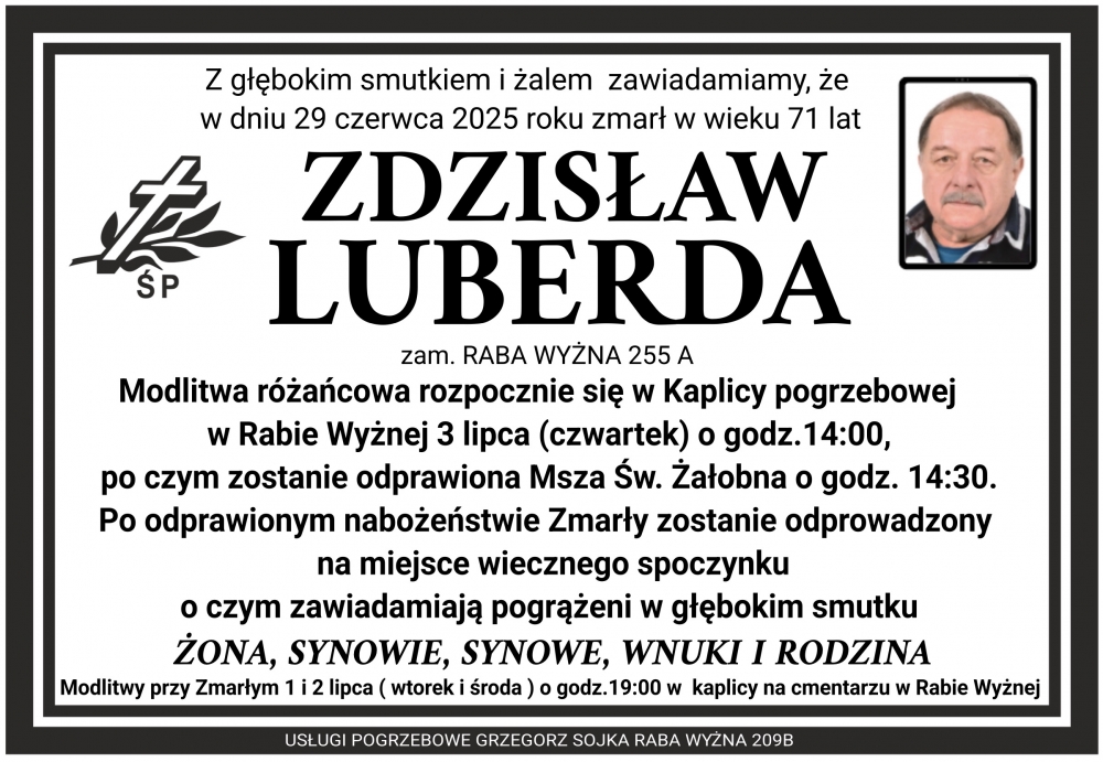 Zdzisław Luberda - Nekrologi - podhale24.pl