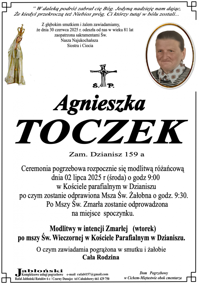 Agnieszka Toczek - Nekrologi - podhale24.pl