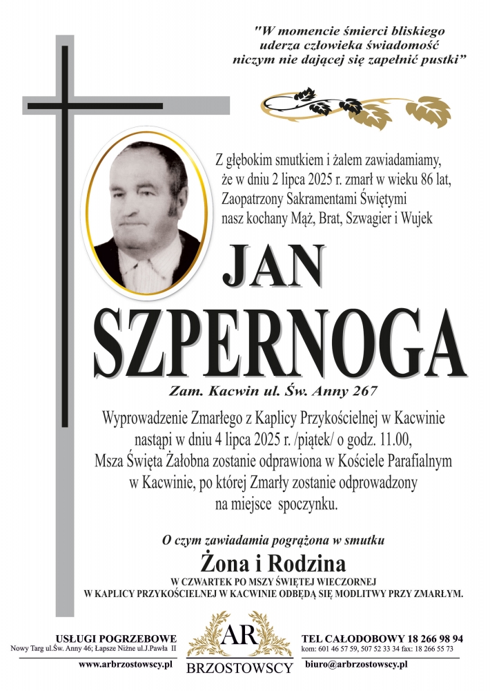 Jan Szpernoga - Nekrologi - podhale24.pl