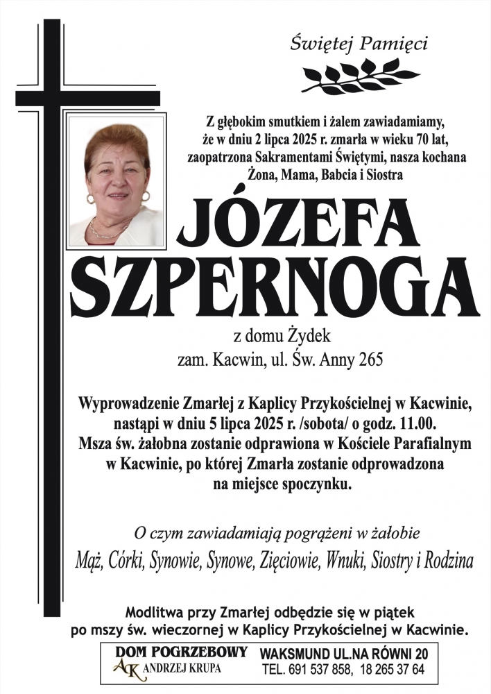 Józefa Szpernoga - Nekrologi - podhale24.pl