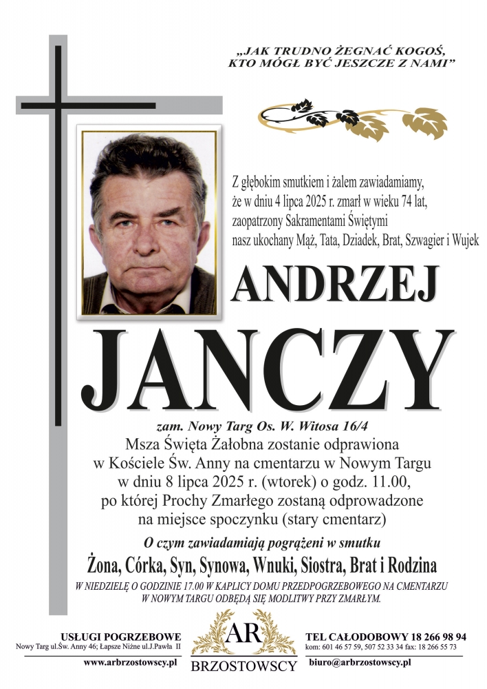 Andrzej Janczy - Nekrologi - podhale24.pl