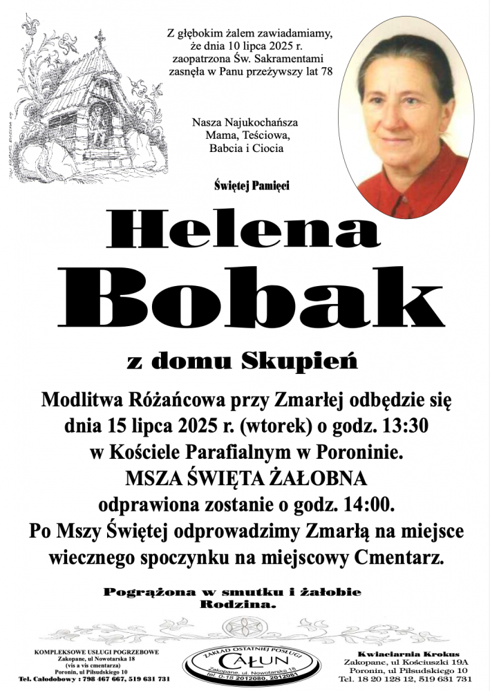 Helena Bobak - Nekrologi - podhale24.pl