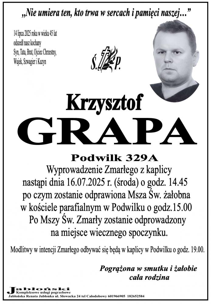 Krzysztof Grapa - Nekrologi - podhale24.pl