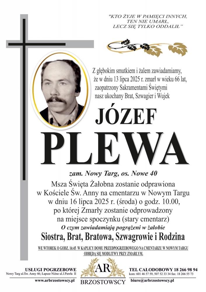 Józef Plewa - Nekrologi - podhale24.pl