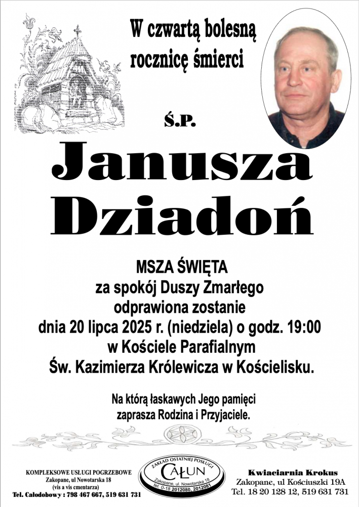 Janusz Dziadoń - Nekrologi - podhale24.pl
