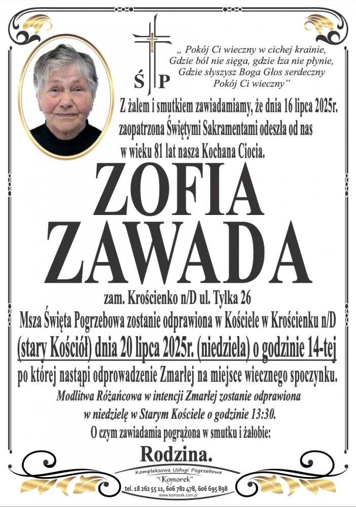 Zofia Zawada - Nekrologi - podhale24.pl