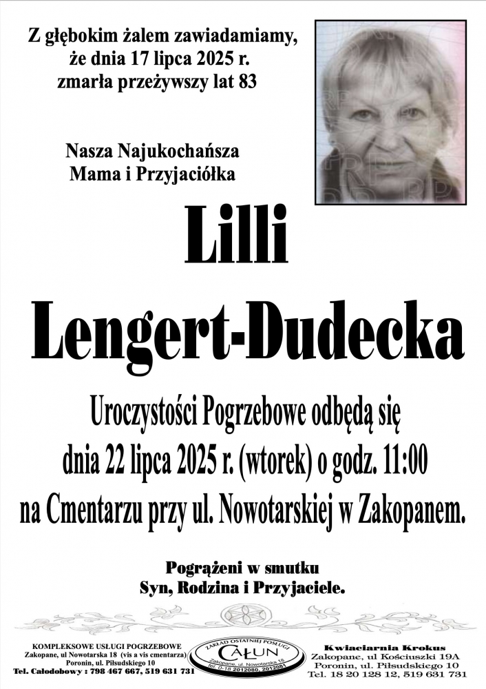 Lilli Lengert-Dudecka - Nekrologi - podhale24.pl