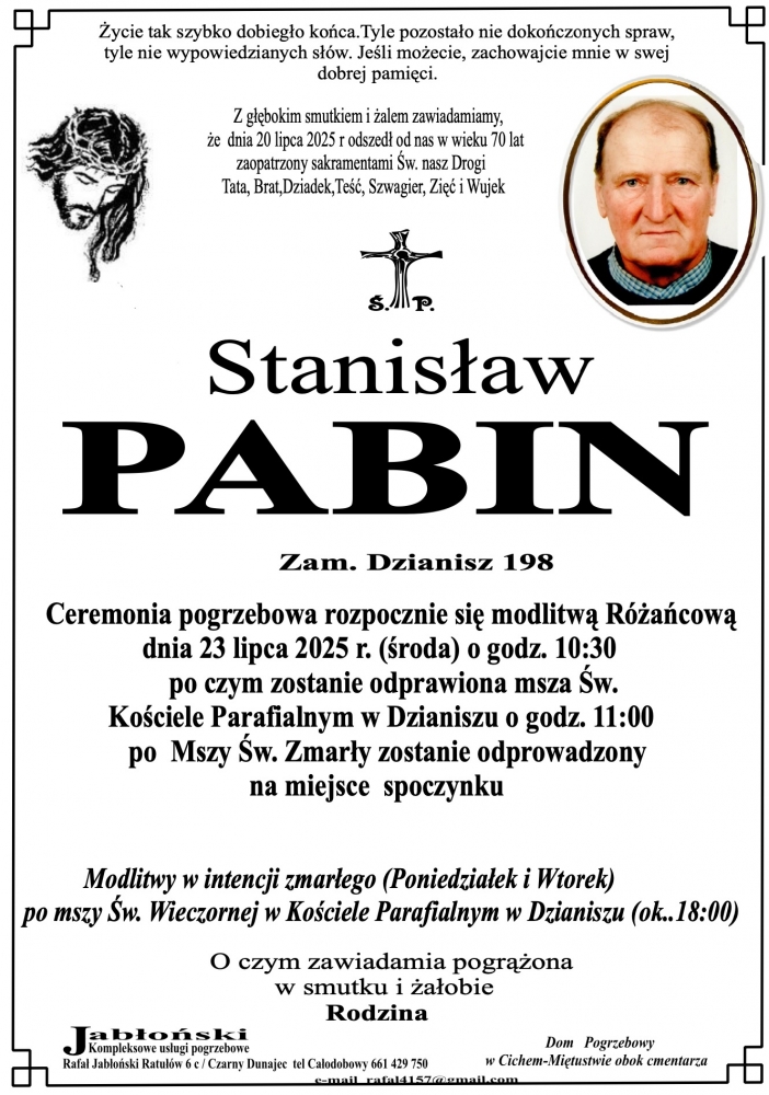 Stanisław Pabin - Nekrologi - podhale24.pl