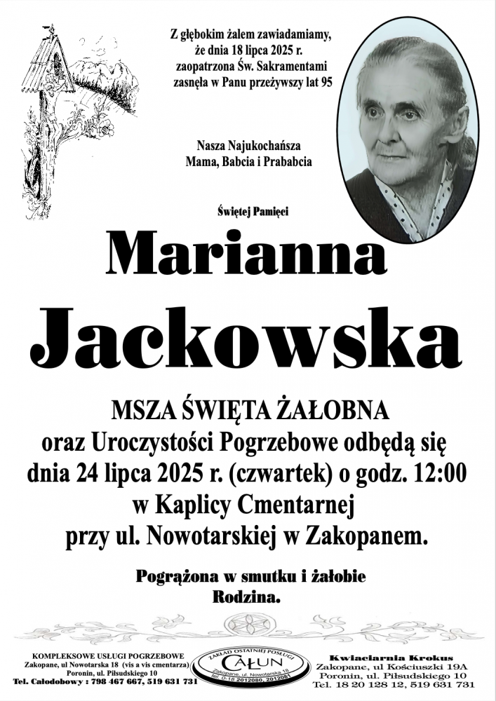 Marianna Jackowska - Nekrologi - podhale24.pl