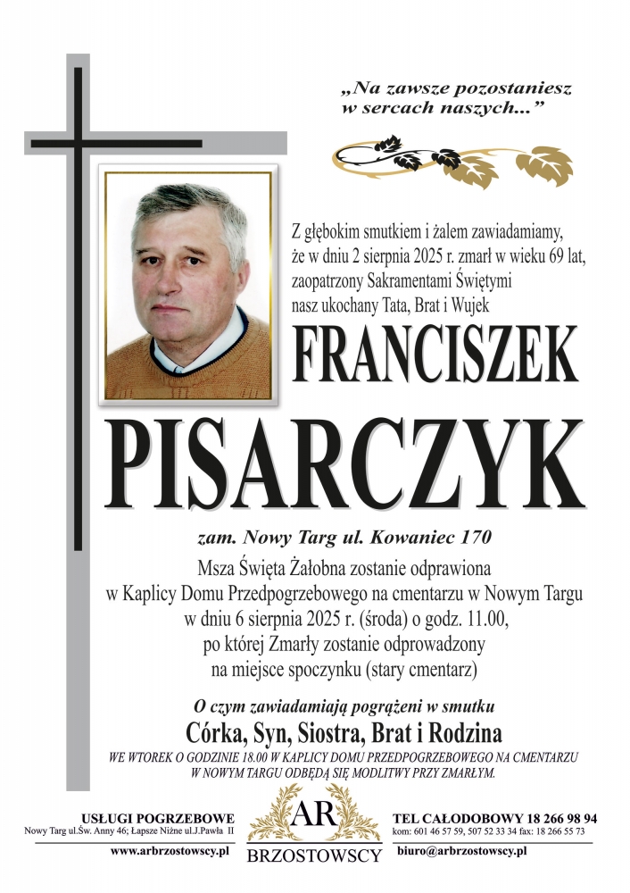 Franciszek Pisarczyk - Nekrologi - podhale24.pl