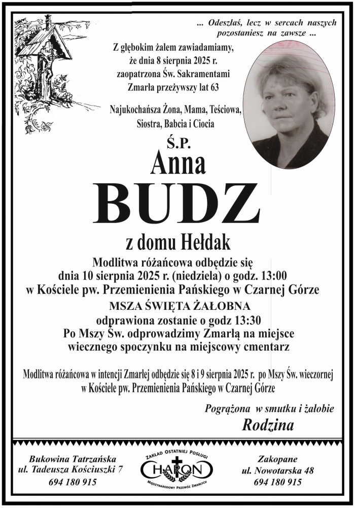 Anna Budz - Nekrologi - podhale24.pl