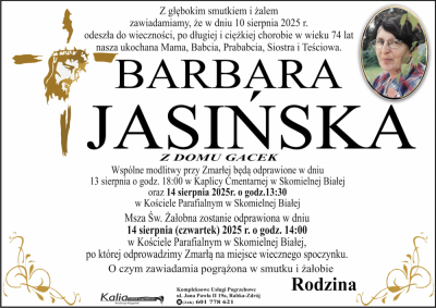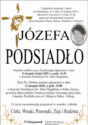 Podhale24.pl zastrzega sobie prawo do nie publikowania wspomnień, w szczególności tych nie związanych z profilem działu nekrologi, zawierających wulgaryzmy, wzywających do zachowań niezgodnych z prawem, obrażających osoby publiczne i prywatne, obrażających inne narodowości, rasy, religie itd, oraz te, bez możliwości telefonicznej lub mailowej weryfikacji ich autora.
