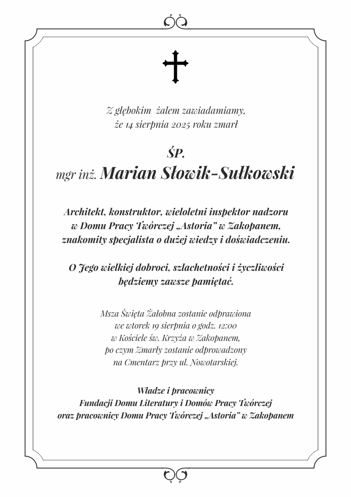 Marian Słowik-Sułkowski - Nekrologi - podhale24.pl