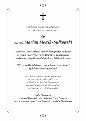 Podhale24.pl zastrzega sobie prawo do nie publikowania wspomnień, w szczególności tych nie związanych z profilem działu nekrologi, zawierających wulgaryzmy, wzywających do zachowań niezgodnych z prawem, obrażających osoby publiczne i prywatne, obrażających inne narodowości, rasy, religie itd, oraz te, bez możliwości telefonicznej lub mailowej weryfikacji ich autora.