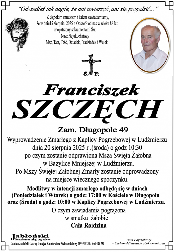 Franciszek Szczęch - Nekrologi - podhale24.pl