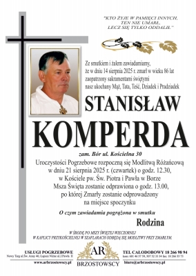 Podhale24.pl zastrzega sobie prawo do nie publikowania wspomnień, w szczególności tych nie związanych z profilem działu nekrologi, zawierających wulgaryzmy, wzywających do zachowań niezgodnych z prawem, obrażających osoby publiczne i prywatne, obrażających inne narodowości, rasy, religie itd, oraz te, bez możliwości telefonicznej lub mailowej weryfikacji ich autora.