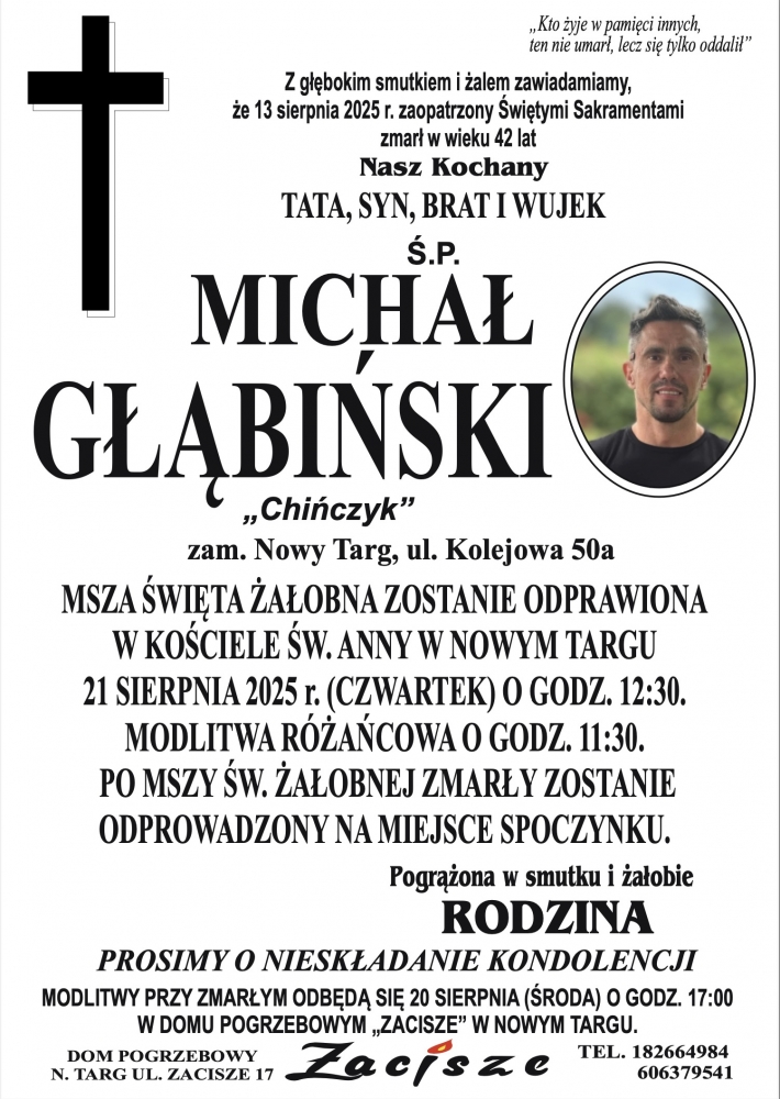 Michał Głąbiński - Nekrologi - podhale24.pl