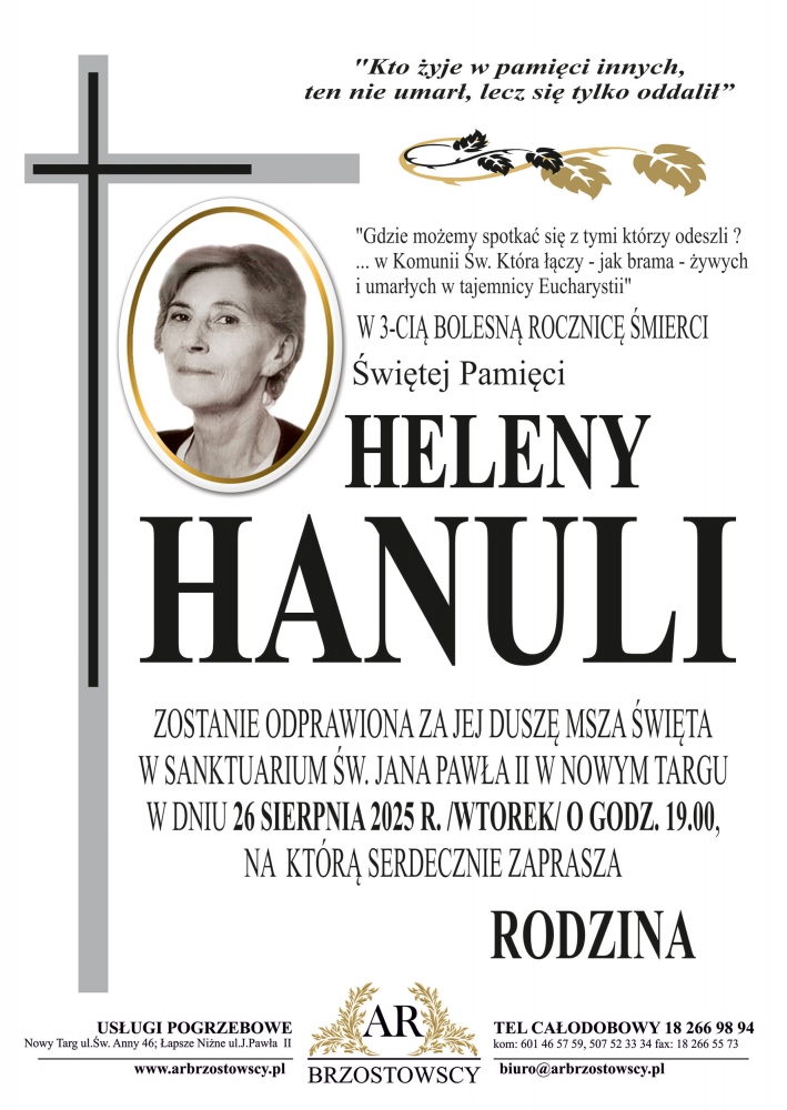 Helena Hanula - Nekrologi - podhale24.pl