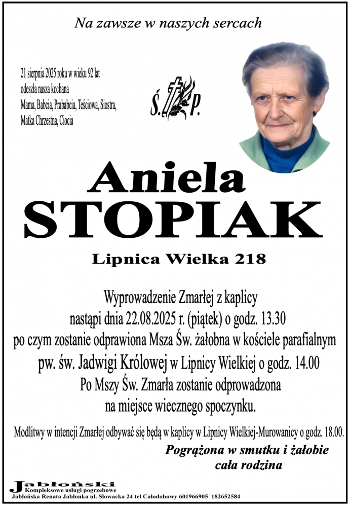Aniela Stopiak - Nekrologi - podhale24.pl